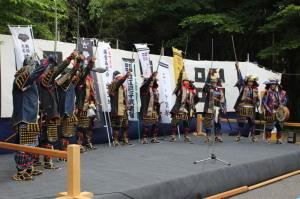 平成27年5月31日、大字正楽寺の勝楽寺境内でバサラ道誉まつりが盛大に開催されました。 南北朝時代の英雄・佐々木道誉公を顕彰し今年27回目を迎えた同まつりは、法養や勝楽寺城跡に関する講演のほか、狂言やオカリナ演奏、甲良甲冑隊のパレードなど盛りだくさんの内容。訪れた人々から盛んに拍手が送られていました。 また、会場では地元の女性らがひとつひとつ丁寧に笹でくるんだ「ちまき」が抹茶とともに振る舞われ、そのどこか懐かしい素朴な味からは、おもてなしの心が伝わってきました。