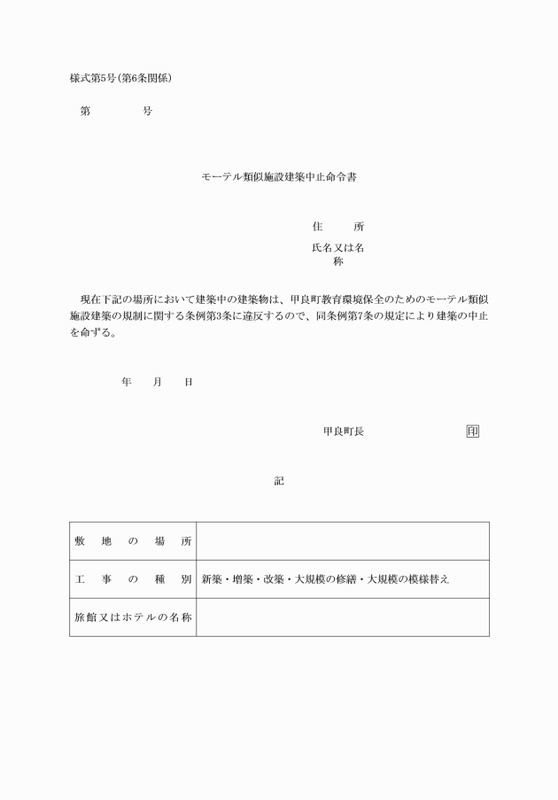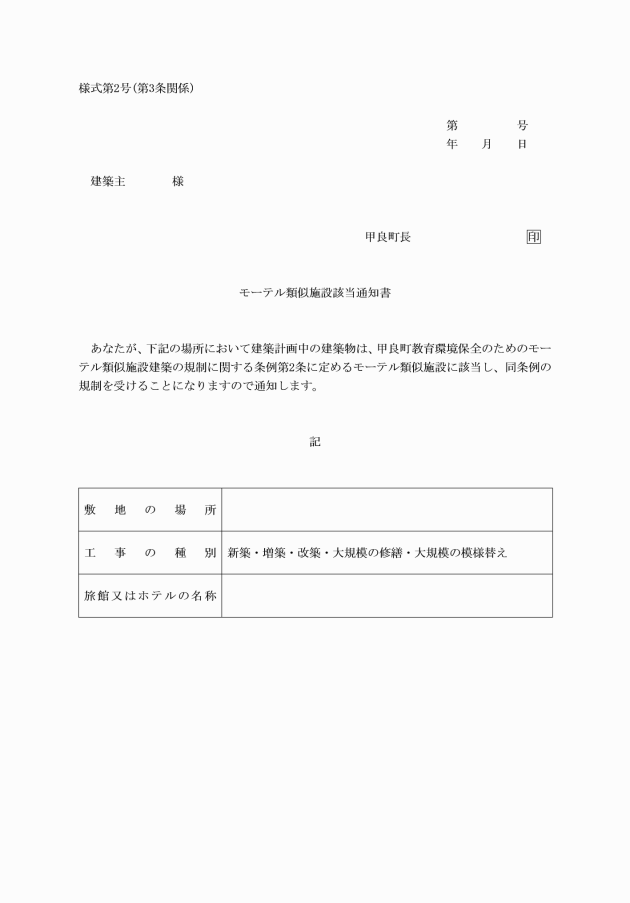 ○甲良町教育環境保全のためのモーテル類似施設建築の規制に関する条例施行規則