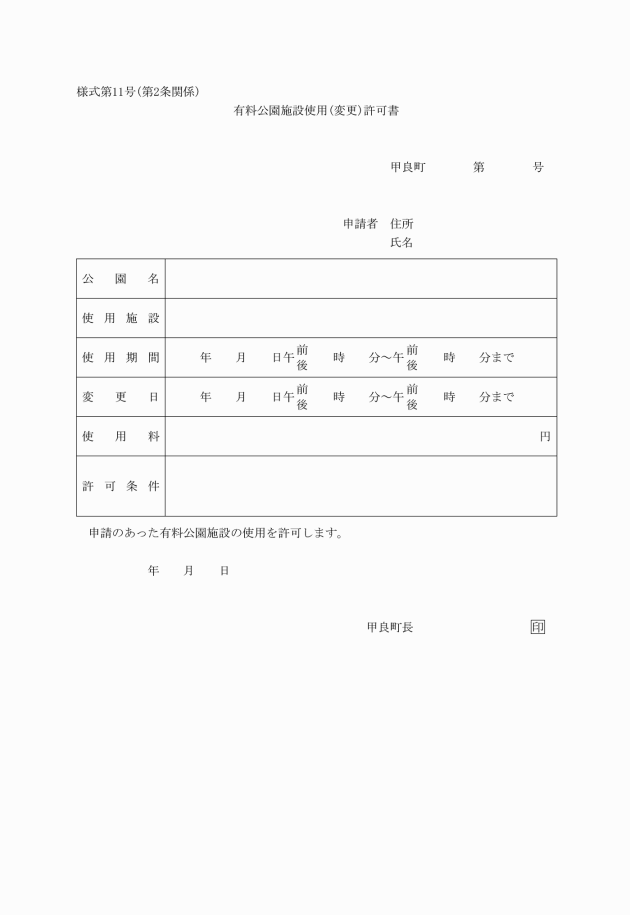 (11) 有料公園施設使用(変更)許可書 様式第11号