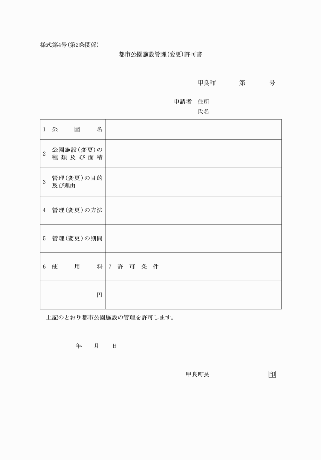 (4) 都市公園施設管理(変更)許可書 様式第4号