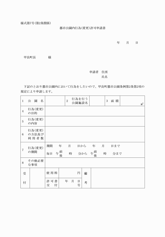 (7) 都市公園内行為(変更)許可申請書 様式第7号