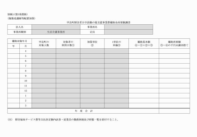 (1) 甲良町障害者日中活動の場支援事業費補助金所要額調書(別紙1)