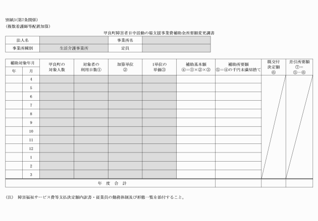 (1) 甲良町障害者日中活動の場支援事業費補助金所要額変更調書(別紙3)